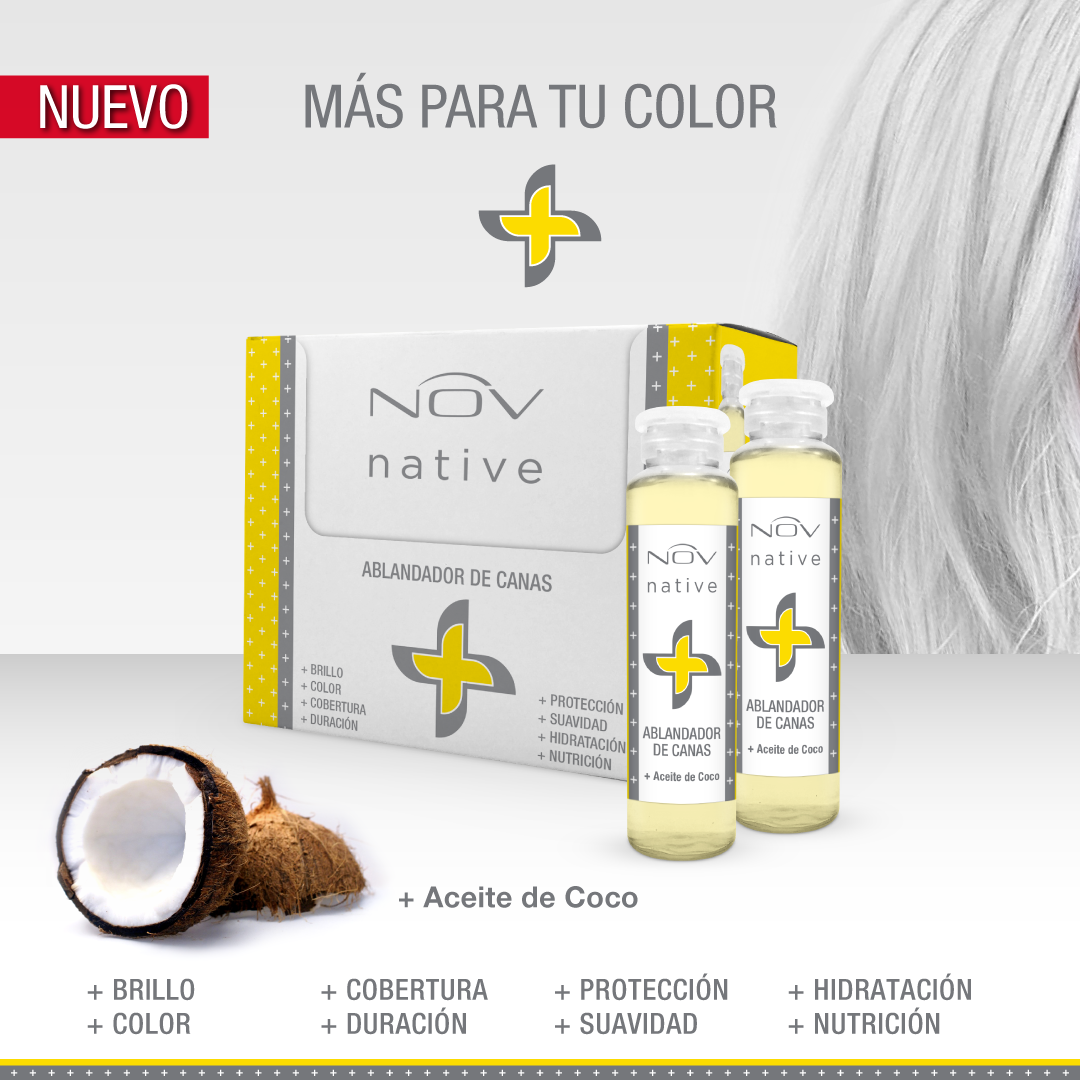 El ablandador de canas NOV NATIVE + facilita la penetración de la tintura. Su fórmula abre delicadamente las cutículas. Gracias al Aceite de Coco protege e hidrata el cabello durante todo el proceso, permitiendo la penetración del color sobre las canas más rebeldes o duras.