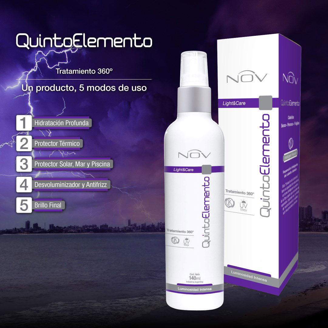 UN PRODUCTO 5 APLICACIONES: NOV Quinto Elemento es un novedoso TRATAMIENTO 360°, que reúne múltiples modos de uso para lograr diferentes resultados.