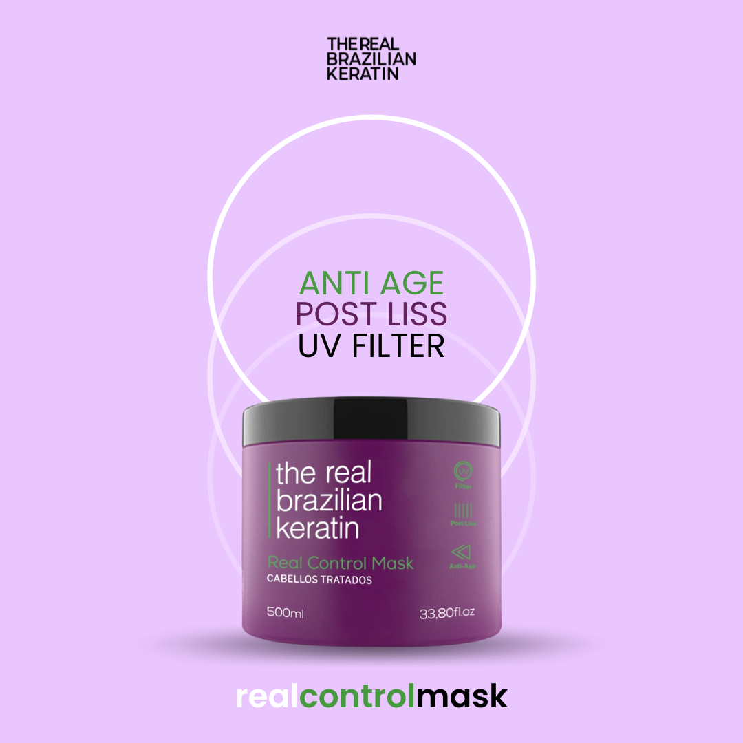 Real Control Mask The Real Brazilian Keratin es un tratamiento para todo tipo de cabellos, con efecto anti age que combate y retarda el envejecimiento capilar. Además otorga una hidratación profunda y una nutrición intensa. Devuelve la vitalidad perdida al cabello, proporcionando una textura ligera y un increíble brillo instantáneo. Contiene filtro UV. Anti-frizz.
