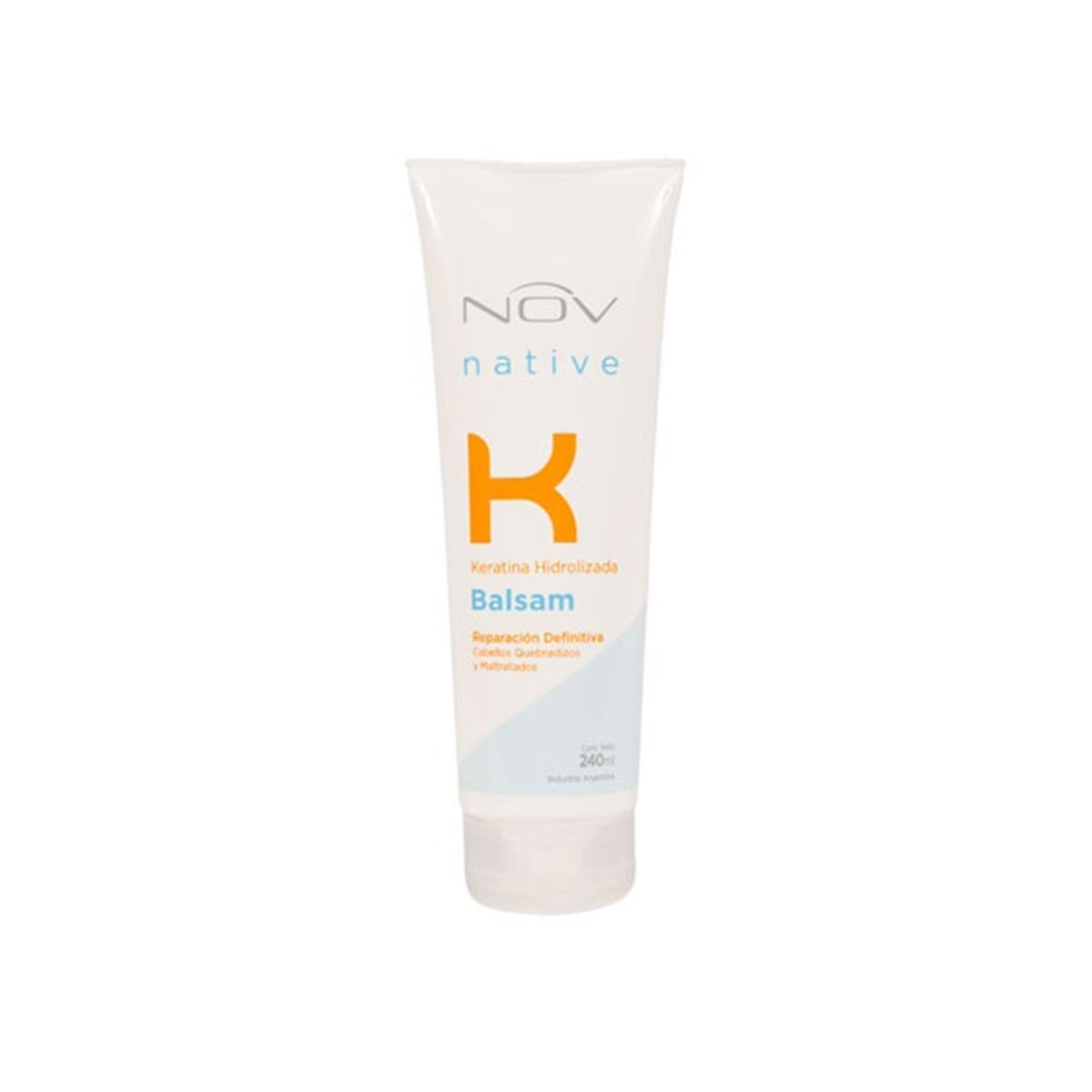 La línea NOV NATIVE K con Keratina Hidrolizada, reparación definitiva, especialmente diseñada para cabellos quebradizos y maltratados. Acondiciona y reestructura la fibra capilar, devolviéndole al cabello docilidad y volumen.