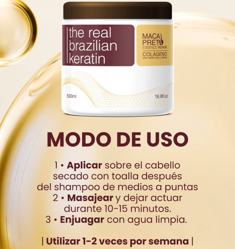 MÁSCARA MACA PRETA COLÁGENO x 500 ml. (Ideal para cabellos secos y dañados)